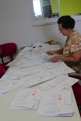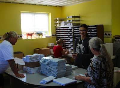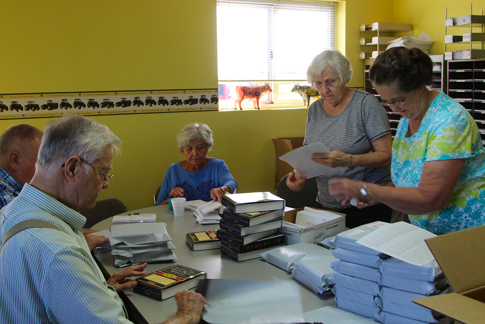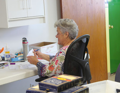 I didn’t get any pictures of the group getting the Bibles ready for mailing as I was still working on the entering the names and addresses of all those wanting a Bible. We sent out 48 Bibles today. It is SUCH a pleasure to work with willing happy volunteers. This office rings loud with laughter and fellowship as we work together making sure a prisoner gets the best gift of all.